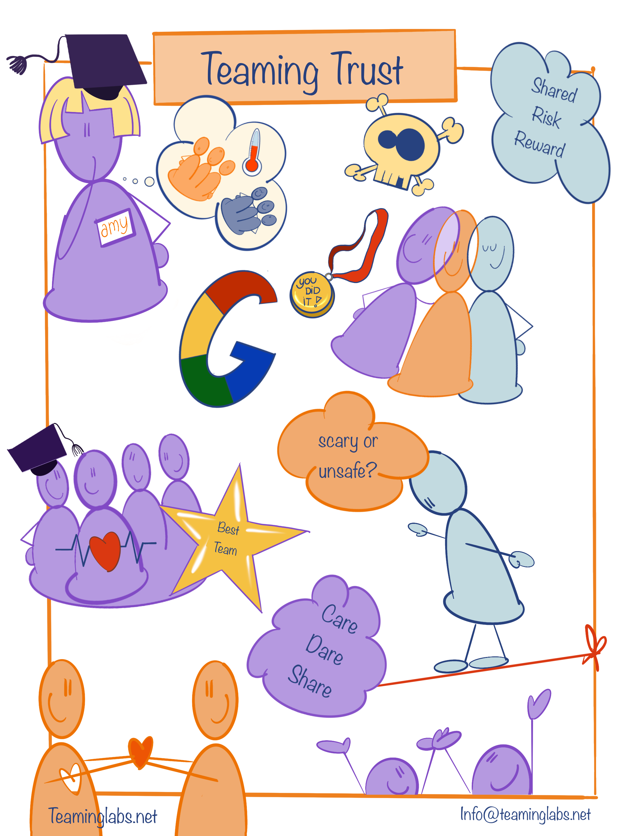 Best for making “trust” discussable: shared risk/reward, and what teams can do when things feel unsafe or tense.