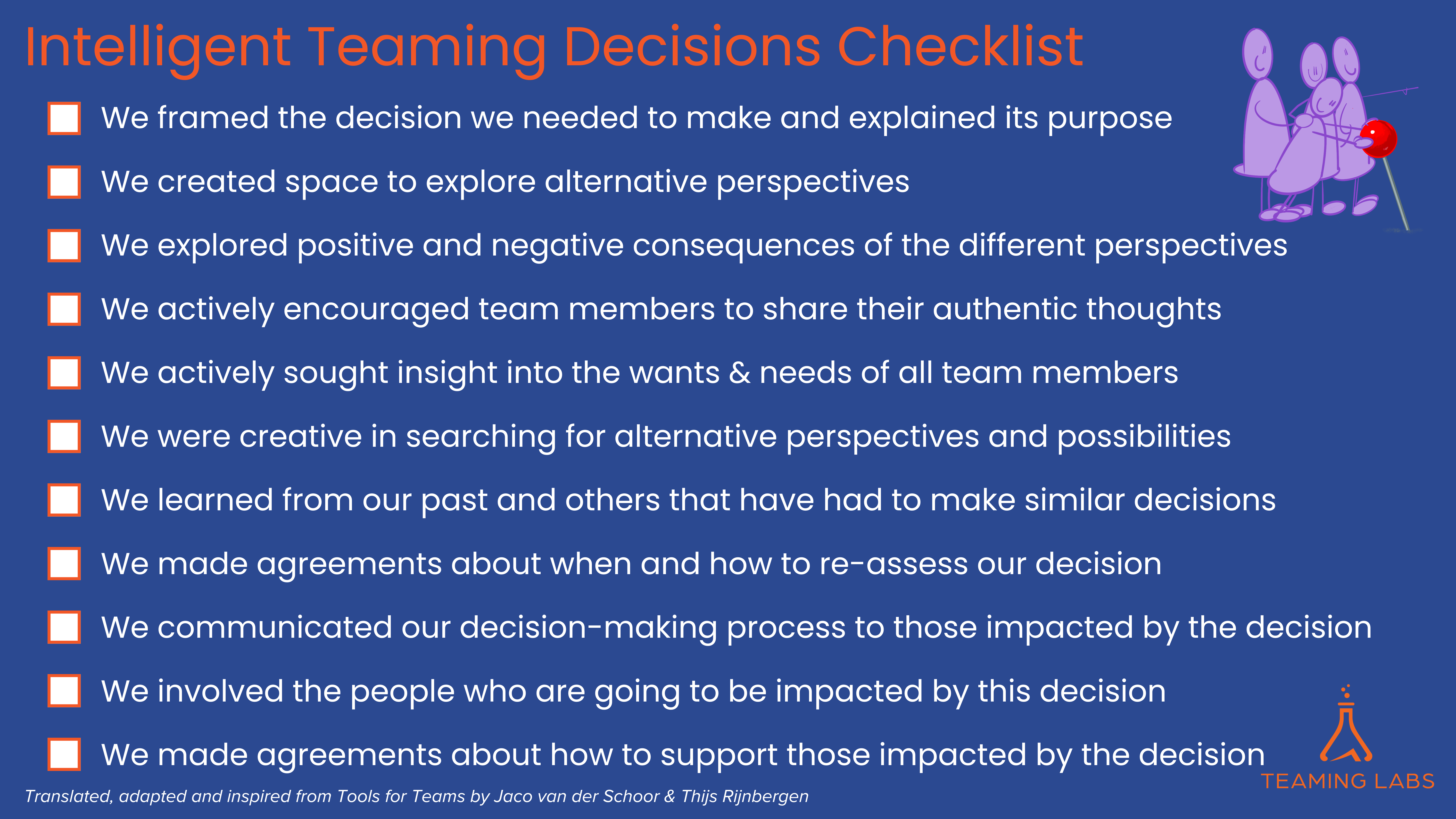Best for teamafspraken: niemand heeft het monopolie op de waarheid; iedereen is welkom (maar niet elk gedrag); samen verantwoordelijk voor het klimaat.