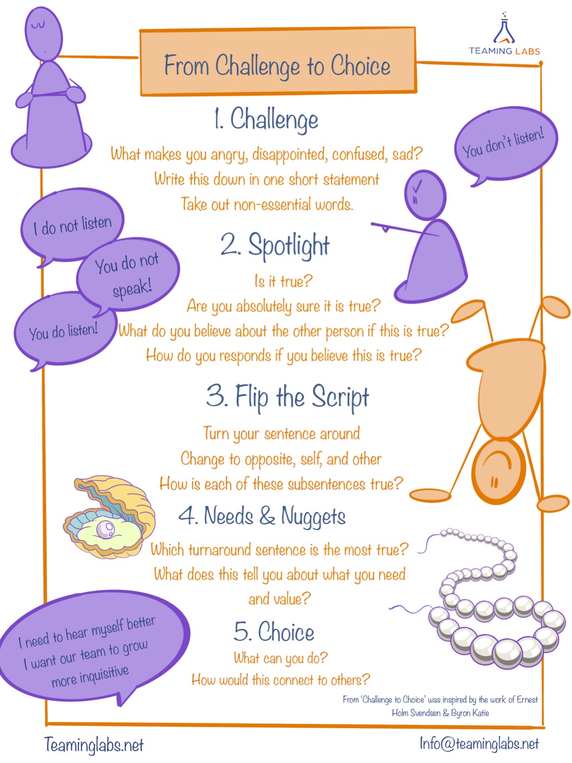 Best for slowing a reactive moment down and shifting from frustration to an explicit, constructive choice.